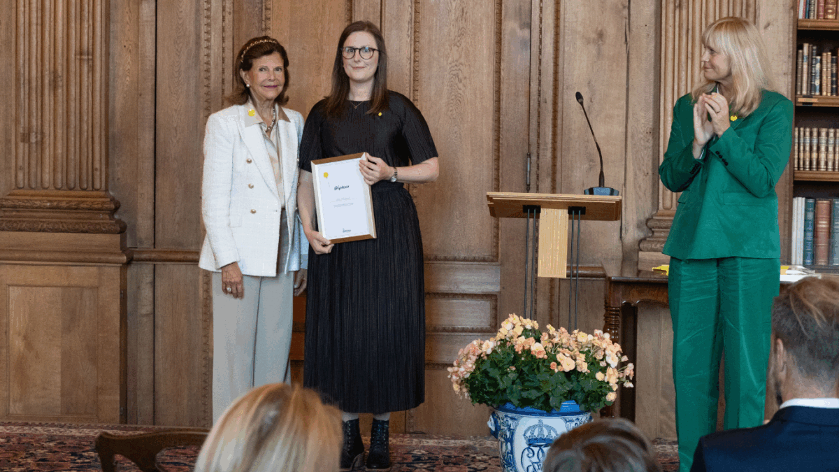 Vid diplomceremonin hyllades även arbetsterapeuten och forskaren Elin Widmark, vars projekt finansieras av Majblomman. Hon tog emot diplom för sin forskning om hur barn med intellektuell funktionsnedsättning kan få bättre stöd i vardagen, ett arbete som på sikt kan göra stor skillnad för många barn. Läs projektbeskrivningen här.
